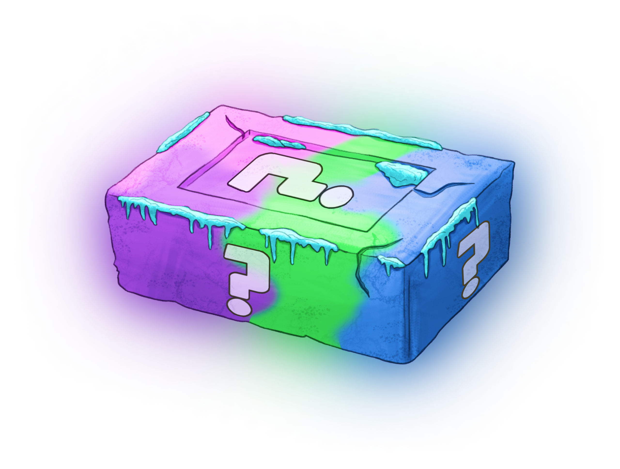 Unveil the secrets of the SaaR ecosystem with the Mystery Brick Pack. This high-tier digital asset features a vibrant, multi-colored neon glow in pink, green, and blue, branded with distinct question marks that signal the hidden value within. The design is finished with a signature “frozen” dripping texture along the edges, consistent with the premium collectibles in the saarofficial series.